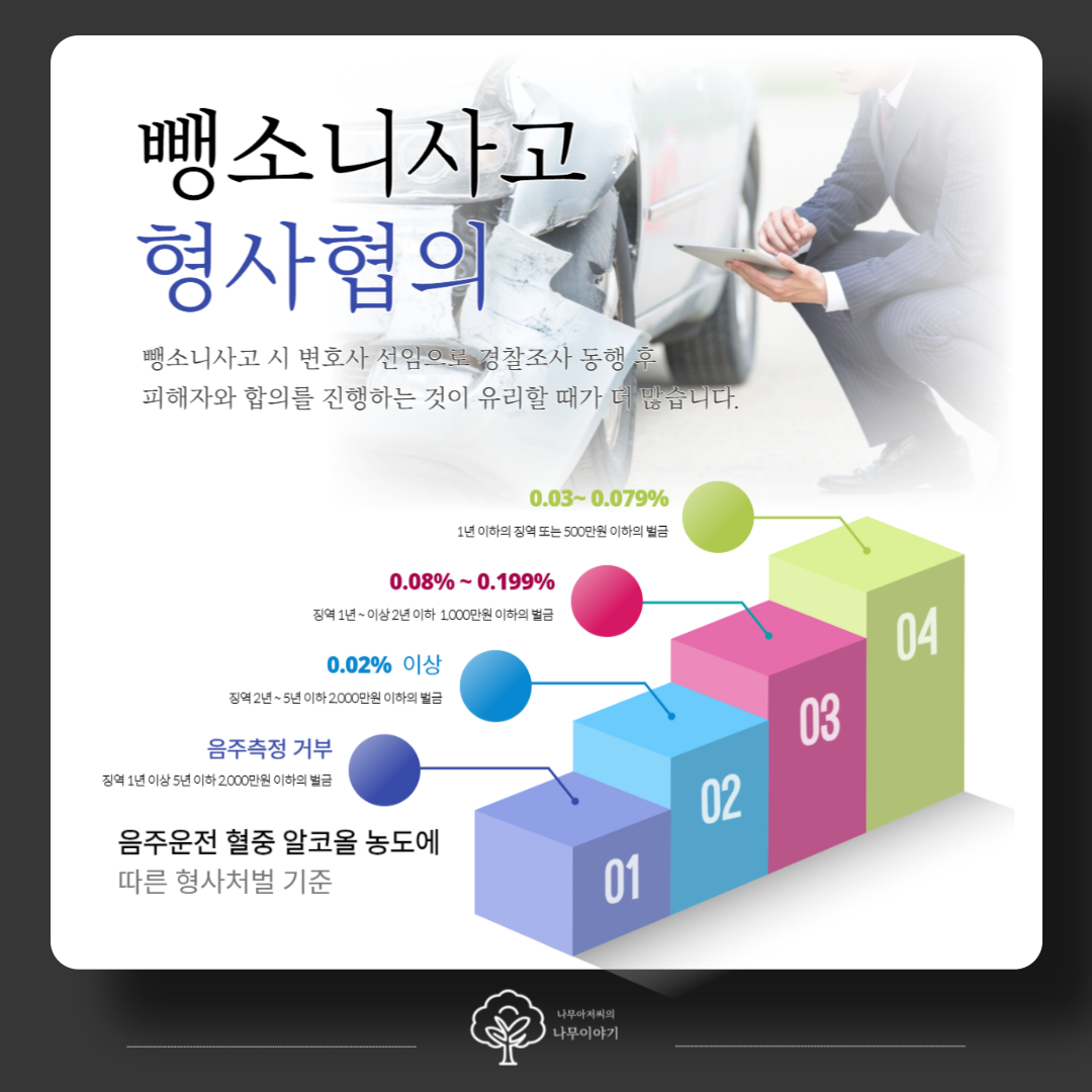 초범이라 할지라도 처벌이 중한 범죄 혐의인데 2회, 3회 음주운전을 하신 경우가 대부분이며, 아직은 보살핌이 필요한 아이들의 가장 또는 어머님이시기에 안타까움의 표현이 부족한 사항입니다. 사건 초기 경찰 조사부터 사건의 경위 그리고 억울한 경우라면 관련 증거자료 제출 그리고 혐의가 인정된다면 빠른 형사 협의와 기소에 의한 재판 대응 그리고 무엇보다도 중요한 심리적 안정과 법률적 지식을 통해 대응할 담당 변호사 지정입니다.